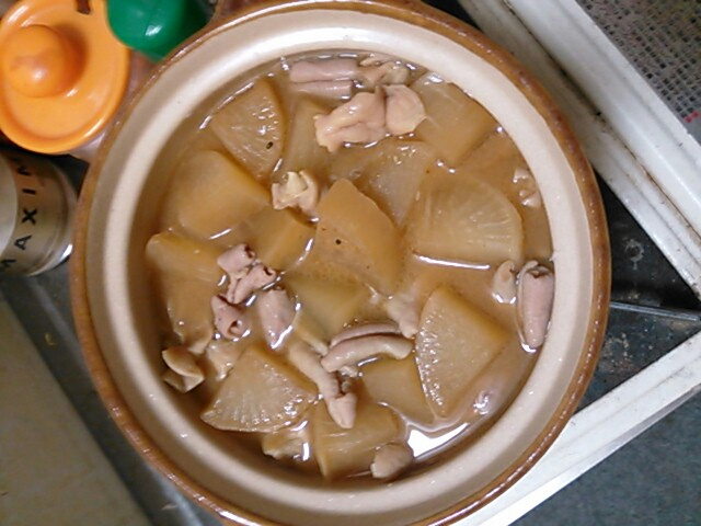 だいたいこれで味噌汁のお椀で4カップ分くらいでしょうか。大根はもっと薄切りの方が良かったな。大根を先に食べきったら、また大根を追加する手もある。肌寒いのは閉口するが、煮物料理の作りおきができるのだけは秋冬はありがたい。ゴボウやコンニャクも入れられたらなお嬉しいが、牛白モツよりゴボウやコンニャクの方がよっぽど高くつく。以上貧乏料理のご報告でした。