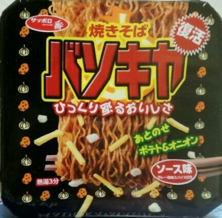 何でもカップ麺は一見全国統一規格に見えて東日本と西日本では売れ筋のブランドもはっきり違い、さらに同じ銘柄でも味を変えてあるそうで、カップ焼きソバで言えばペヤングが定番なのは東日本だけらしい。案外バソキヤも西日本発のブランドだったのかもしれない。特色として5mm角・長さ3cm程度のフライドポテト(小さいじゃがりこ、またはクルトンみたいな感じ)が湯切り後・ソース混ぜ後のトッピングについている。これは西日本では当たり前の天かす感覚なのではあるまいか。