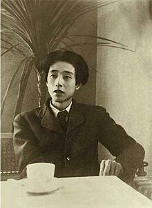 立原道造(1914-1939)23歳頃(昭和13年=1938年)、数寄屋橋ミュンヘンにて。