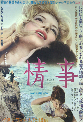アントニオーニの長編第6作『情事』は前作『さすらい』'57から3年ぶり、『女ともだち』'55や『さすらい』同様(ただしさらに深刻に)製作途中で予算不足のため撮影が中断し、新たに出資者を得て再開するも一時はスタッフとキャストのほとんどがアントニオーニへの不信感を募らせて完成すら危ぶまれるという逆境を越えて完成されました。同作は1960年の