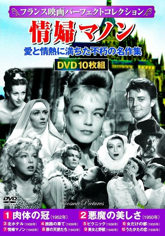 ○2018年9月25日発売 [ フランス映画パーフェクトコレクション~情婦マノン ] 1.『肉体の冠』'52、2.『悪魔の美しさ』'50、3.『北ホテル』'38、4.『旅路の果て』'39、5.『ピクニック』'36、6.『女だけの都』'35、7.『情婦マノン』'49、8.『罪の天使たち』'43、9.『美女と野獣』'46、10.『うたかたの恋』'36
